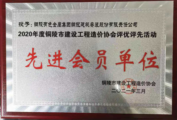 • 銅陵市造價(jià)協(xié)會先進(jìn)會員單位
