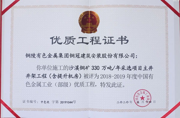 • 沙溪銅礦采選項(xiàng)目主井井架工程(部優(yōu))