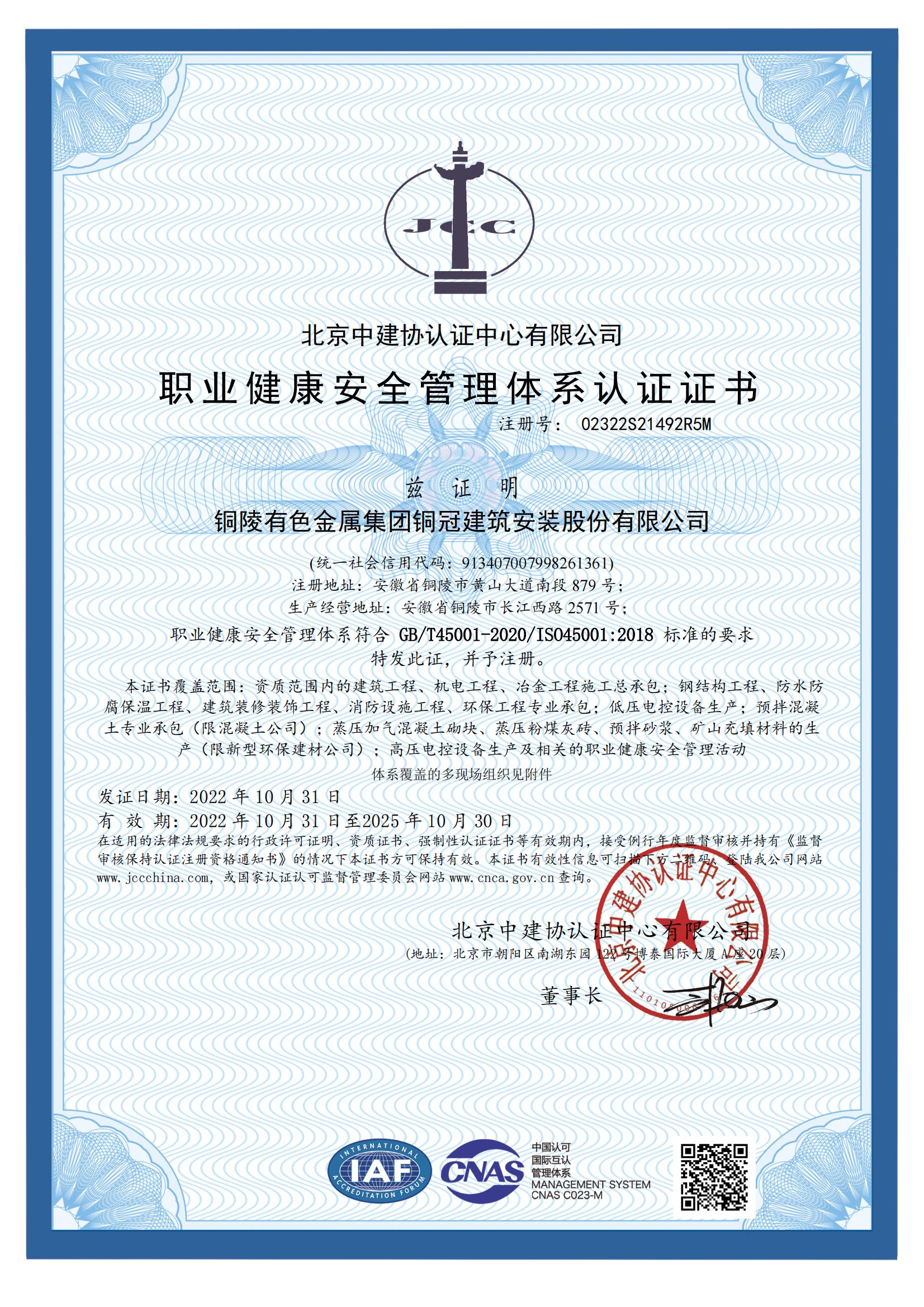 • 職業(yè)健康安全管理體系認(rèn)證證書(shū)
